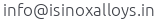 Isinox Wires Co., Ltd. Address: Plot No.A-1, Sector B-3, Tronica City, Loni, Ghaziabad (U.P.) 201102, India Phone: +91 (874) 402-33-03 Website : https://www.isinoxalloys.in Email: